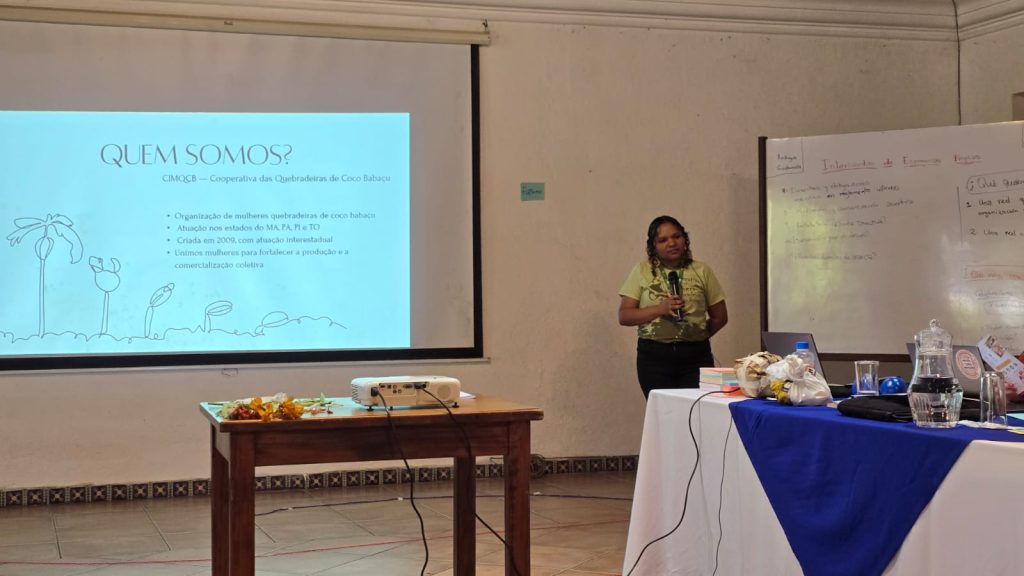 Nos dias 20 e 21 de abril, o Movimento Interestadual das Quebradeiras de Coco Babaçu (MIQCB) levou a força política e organizativa das quebradeiras de coco babaçu para um espaço internacional de intercâmbio e construção coletiva. Representando o movimento, Maria José, coordenadora executiva da Regional Imperatriz, participou, em Antigua, Guatemala, do Encontro Presencial da Rede de Economias Próprias, iniciativa que reuniu 26 experiências de 9 países, entre povos indígenas, comunidades quilombolas e organizações que constroem economias enraizadas nos territórios.