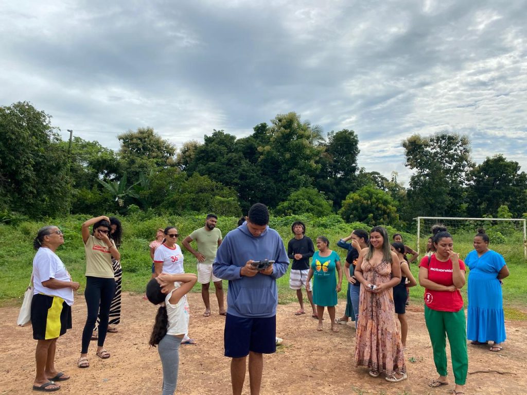 A formação prática incluiu mapeamento aéreo dos babaçuais, orientações sobre georreferenciamento e uso estratégico de imagens para denúncias de desmatamento, queimadas e invasões territoriais. A proposta é que as próprias comunidades possam produzir provas, registrar conflitos e fortalecer suas reivindicações por regularização fundiária.