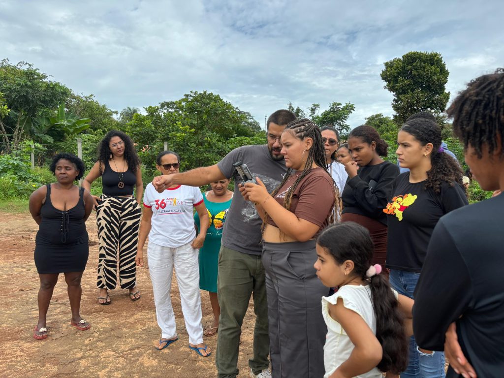 A oficina foi realizada em território de quebradeiras, reafirmando que a tecnologia, quando apropriada pelas comunidades, se torna ferramenta de luta, organização e proteção ambiental.