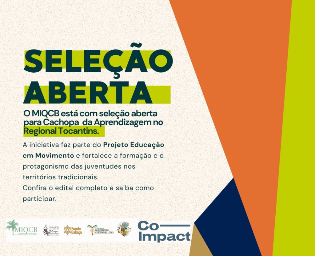 O MIQCB torna público o Edital 01/26, que abre seleção para uma jovem mulher quebradeira de coco babaçu atuar na Cachopa da Aprendizagem, na Regional Tocantins, no município de São Miguel do Tocantins.