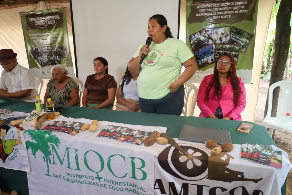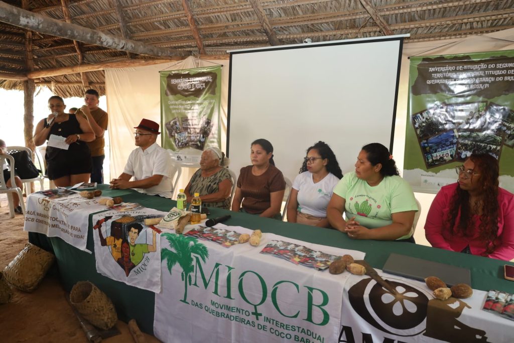O Território Tradicional de Quebradeiras de Coco Babaçu Santa Rosa, no município de São João do Arraial (PI), celebrou nesta quinta-feira, 12 de fevereiro, um ano da titulação coletiva da área. A programação, iniciada às 8h, reuniu quebradeiras de coco, lideranças comunitárias, representantes do poder público e apoiadores em um momento político, formativo e cultural, tendo como atividade central o Seminário Territorial de Gênero e Raça. A data reafirmou a importância da regularização fundiária como instrumento de segurança jurídica, proteção territorial e fortalecimento do modo de vida tradicional das mulheres extrativistas.