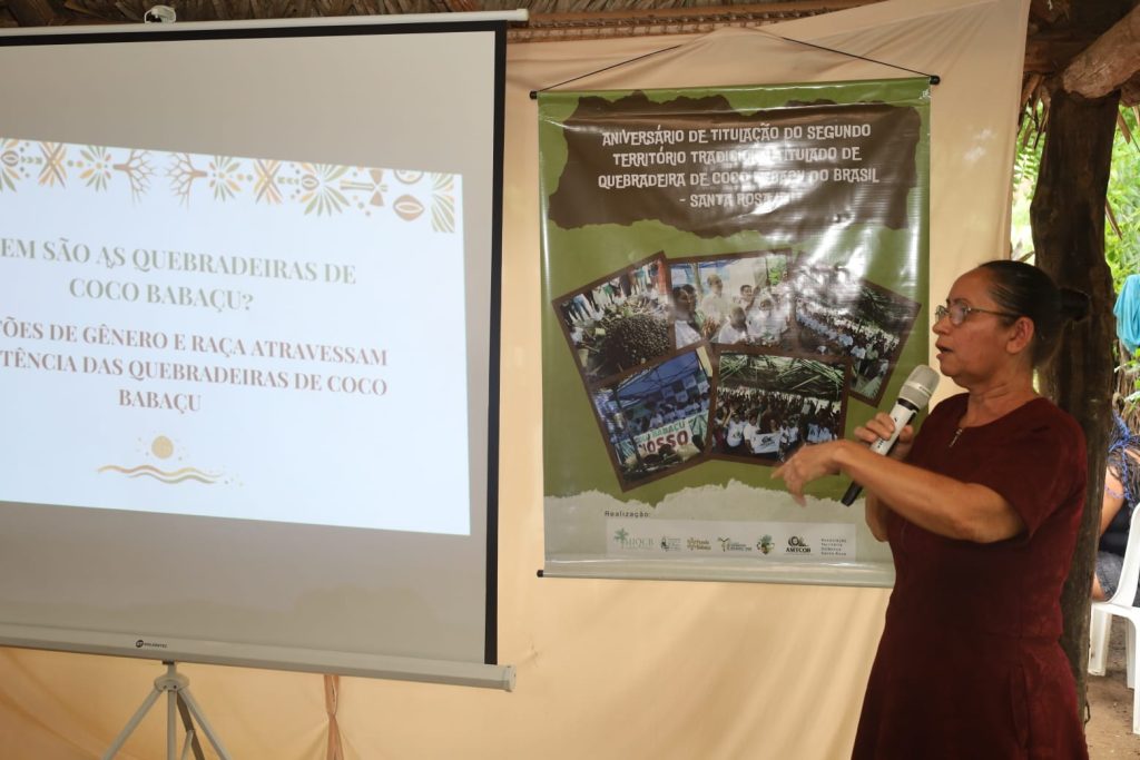 A presidenta da Associação Território de Quebradeira de Coco Babaçu Santa Rosa, Girlene Leal, ressaltou a importância do momento formativo. “Celebrar um ano da titulação é também refletir sobre quem somos e sobre o nosso papel enquanto mulheres negras, trabalhadoras e guardiãs do território. O seminário fortalece nossa consciência política e nossa união para defender o que conquistamos”, declarou.