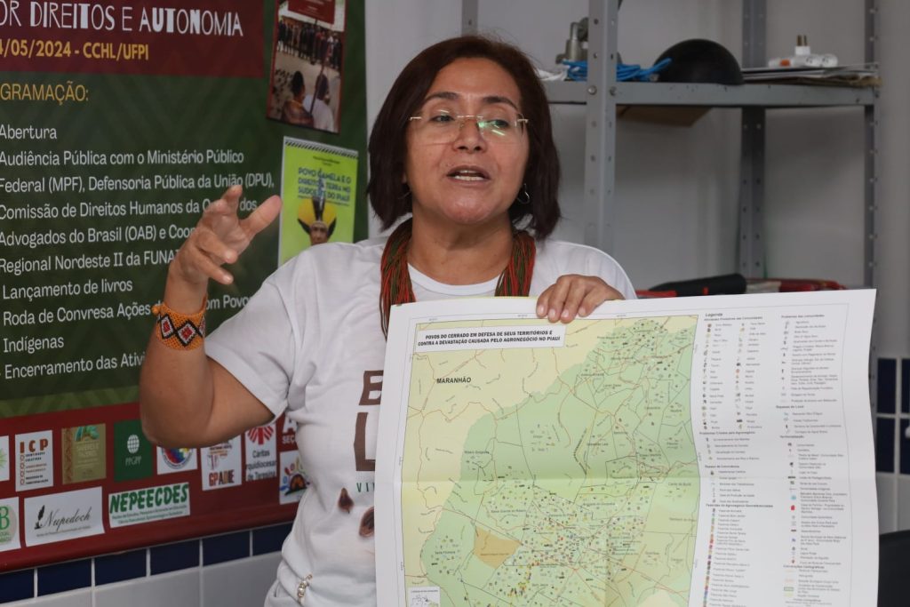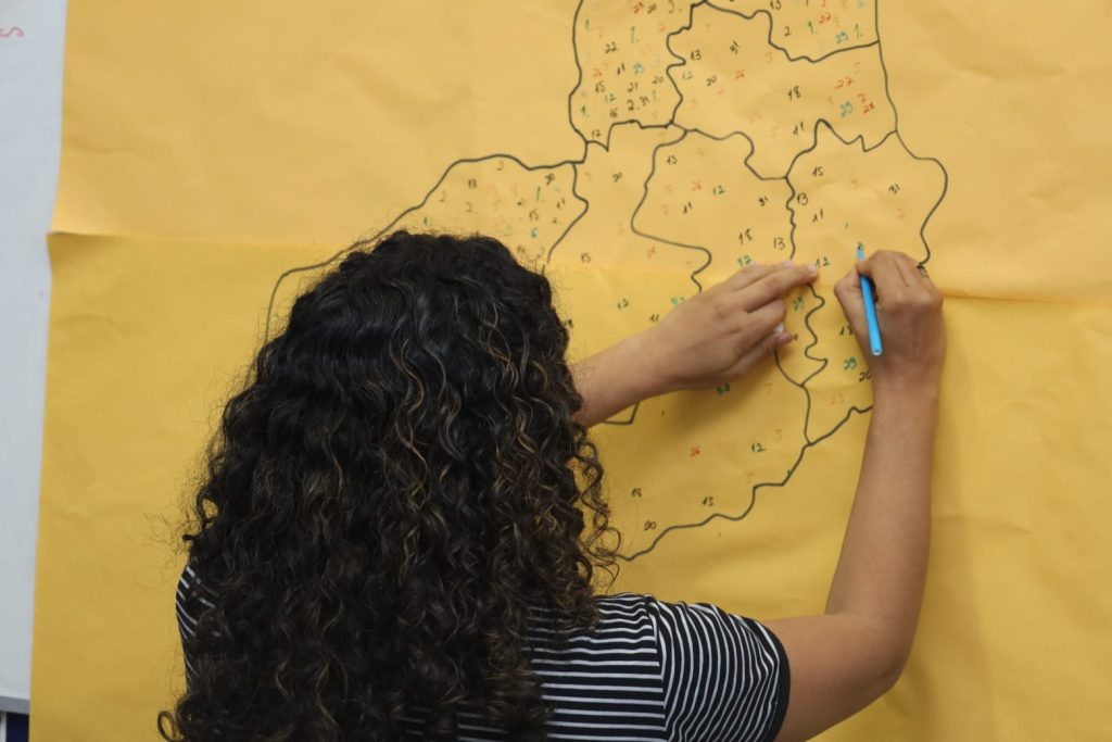 A oficina foi conduzida pelas professoras Elida Cardoso do Instituto Federal do Piauí e Carmem Silva, do Departamento de Cartografia Social da UFPI, além da professora convidada Adriana Miranda, do Departamento de Biologia, que dialogaram com as estudantes sobre o mapa como instrumento político, pedagógico e de afirmação das comunidades tradicionais.