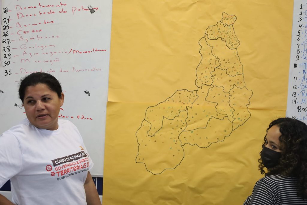 Nesta segunda-feira (23), na Universidade Federal do Piauí (UFPI), em Teresina, as alunas do Curso de Formação em Governança e Direitos Territoriais das Quebradeiras de Coco Babaçu participaram de uma oficina prática sobre cartografia social, aprofundando o debate sobre território, identidade e direitos. A atividade integra o processo formativo promovido pelo Movimento Interestadual das Quebradeiras de Coco Babaçu (MIQCB) e reforça a construção coletiva de instrumentos políticos para a defesa dos territórios tradicionais.
