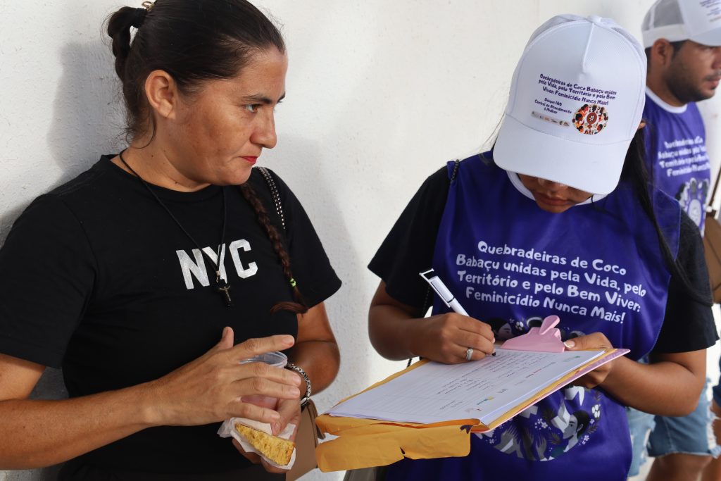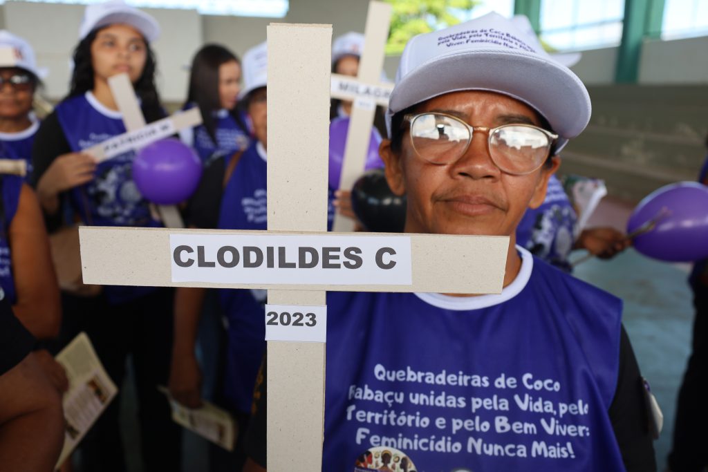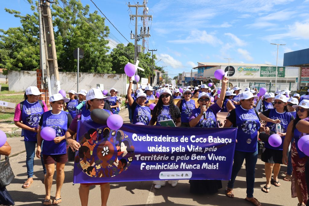 “Estar nas ruas é reafirmar que as quebradeiras de coco babaçu lutam pela vida das mulheres, pelo território e pelo bem viver. Falar sobre feminicídio e violência é também fortalecer nossa organização e cobrar do poder público políticas que garantam proteção e dignidade para todas nós”, afirmou Marinalda.