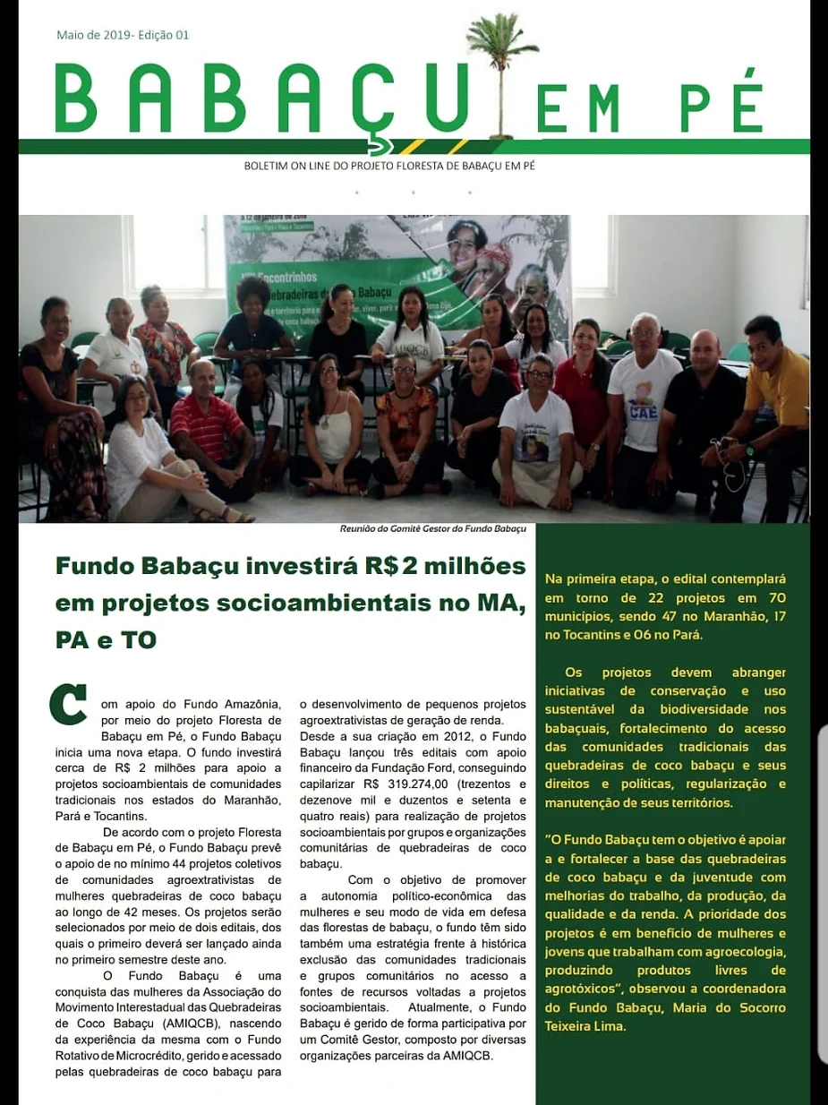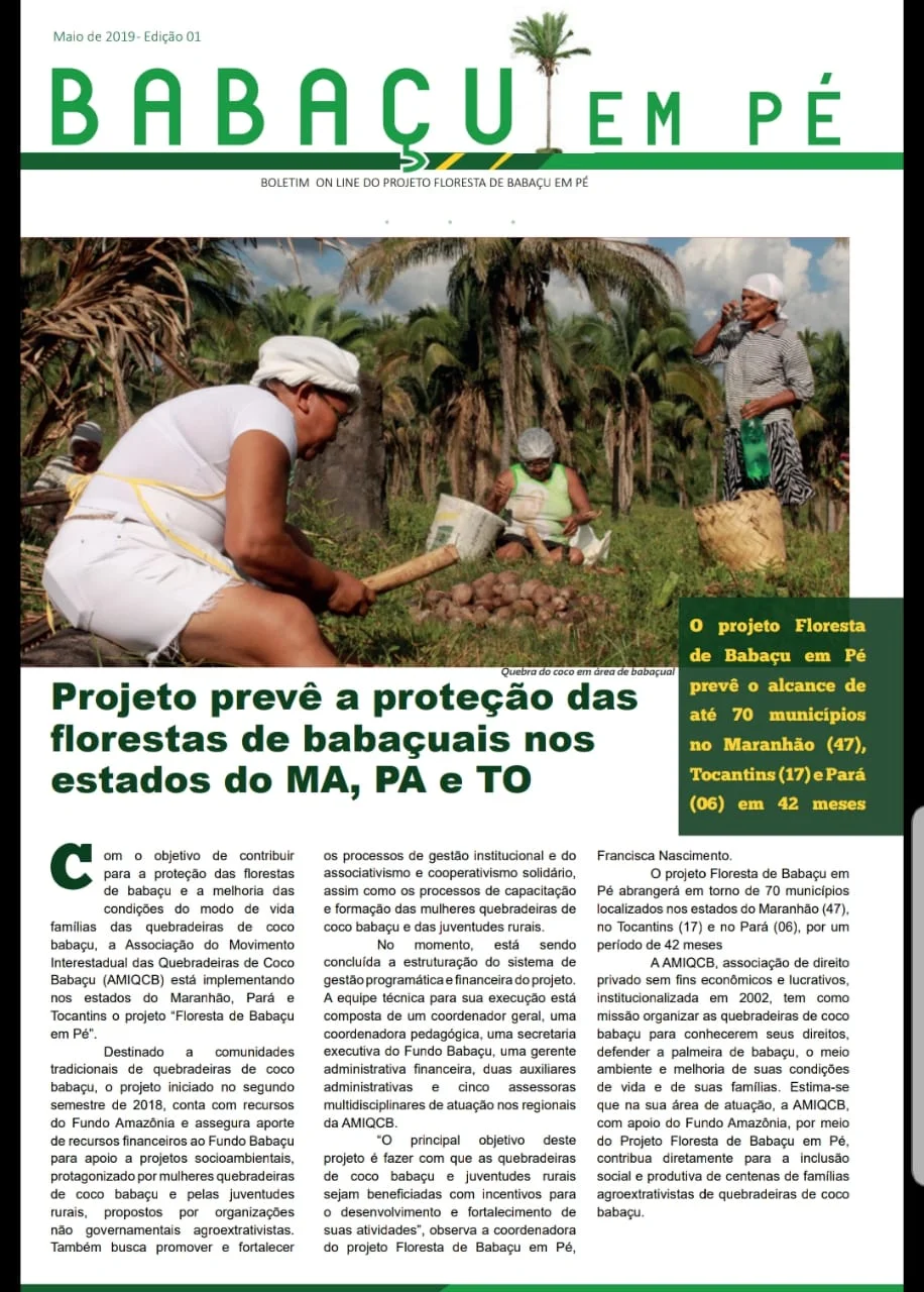 Lançada a segunda edição do jornal online do Projeto Floresta de Babaçu em Pé